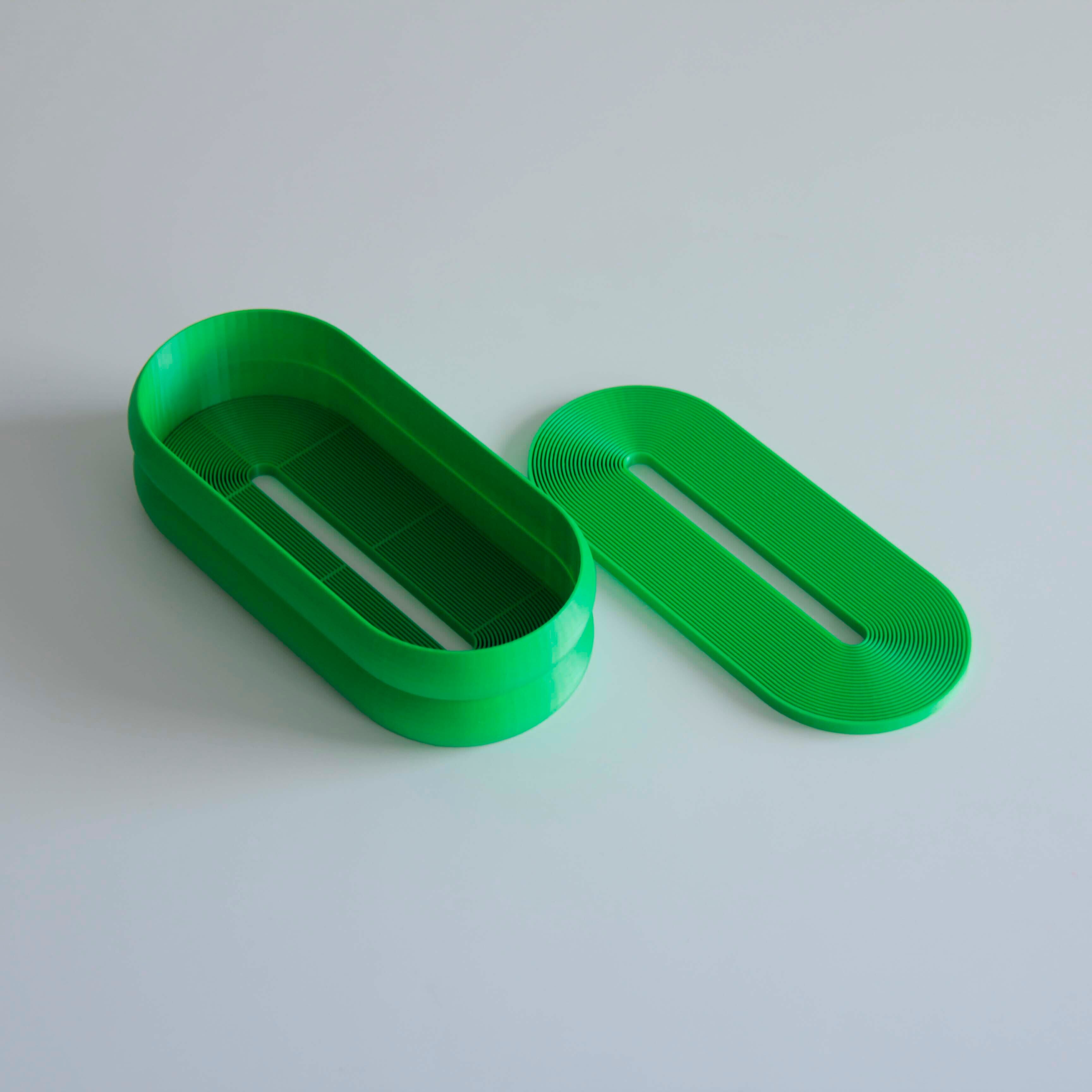 元々あったTrack Trayをでっかくしてみたらどうなるのかなという会話の中から生まれました。構造は非常にシンプルで2つのパーツで構成されてます。本体にティッシュを入れて、その上に重しを載せる。めっちゃ簡単です。ティッシュを使うと徐々に重しが下がっていくので減り具合も一目瞭然なのも嬉しいポイントです。鏡餅みたいに2段に重なったようなフォルムもアイコニックでインテリアのワンポイントにも良さそうです。