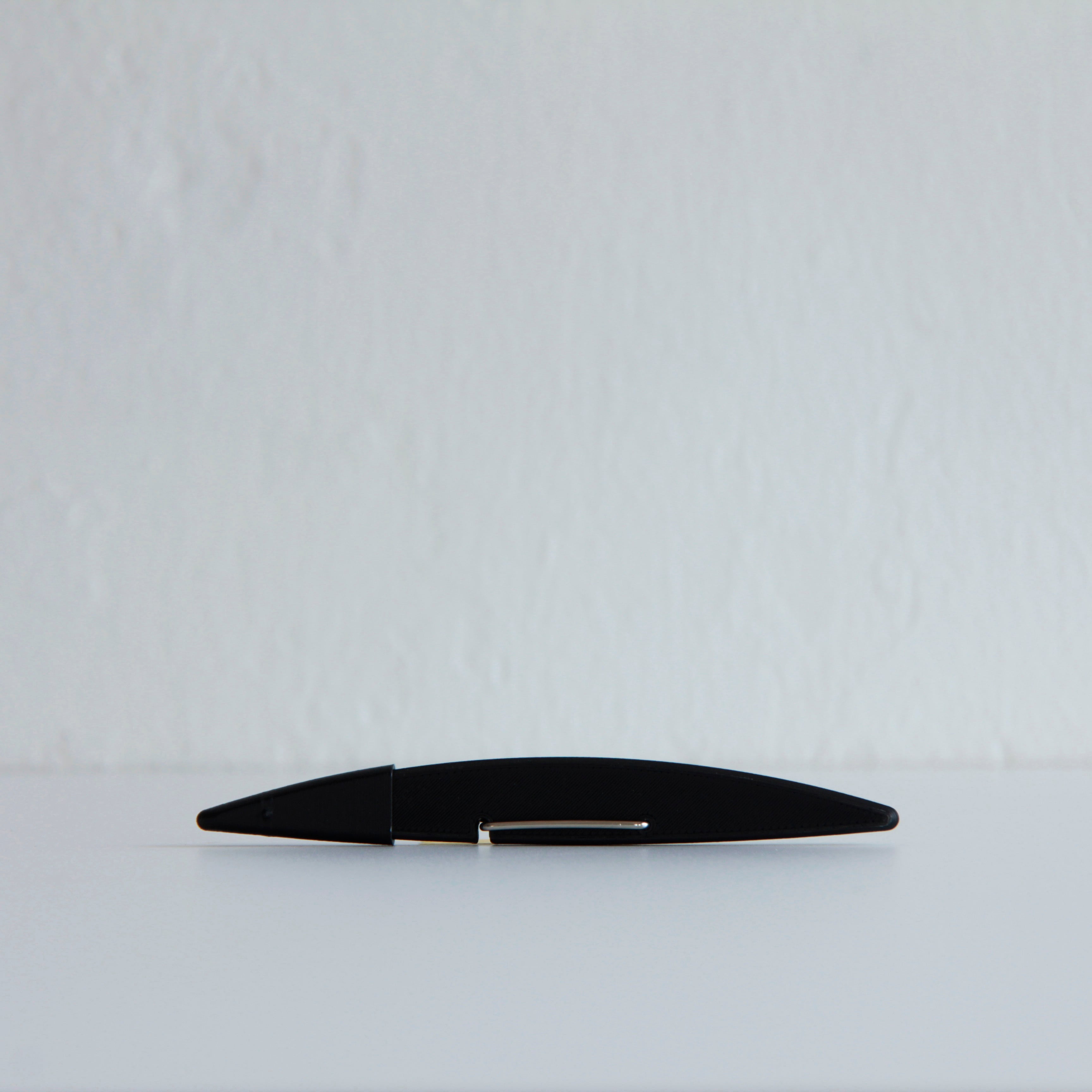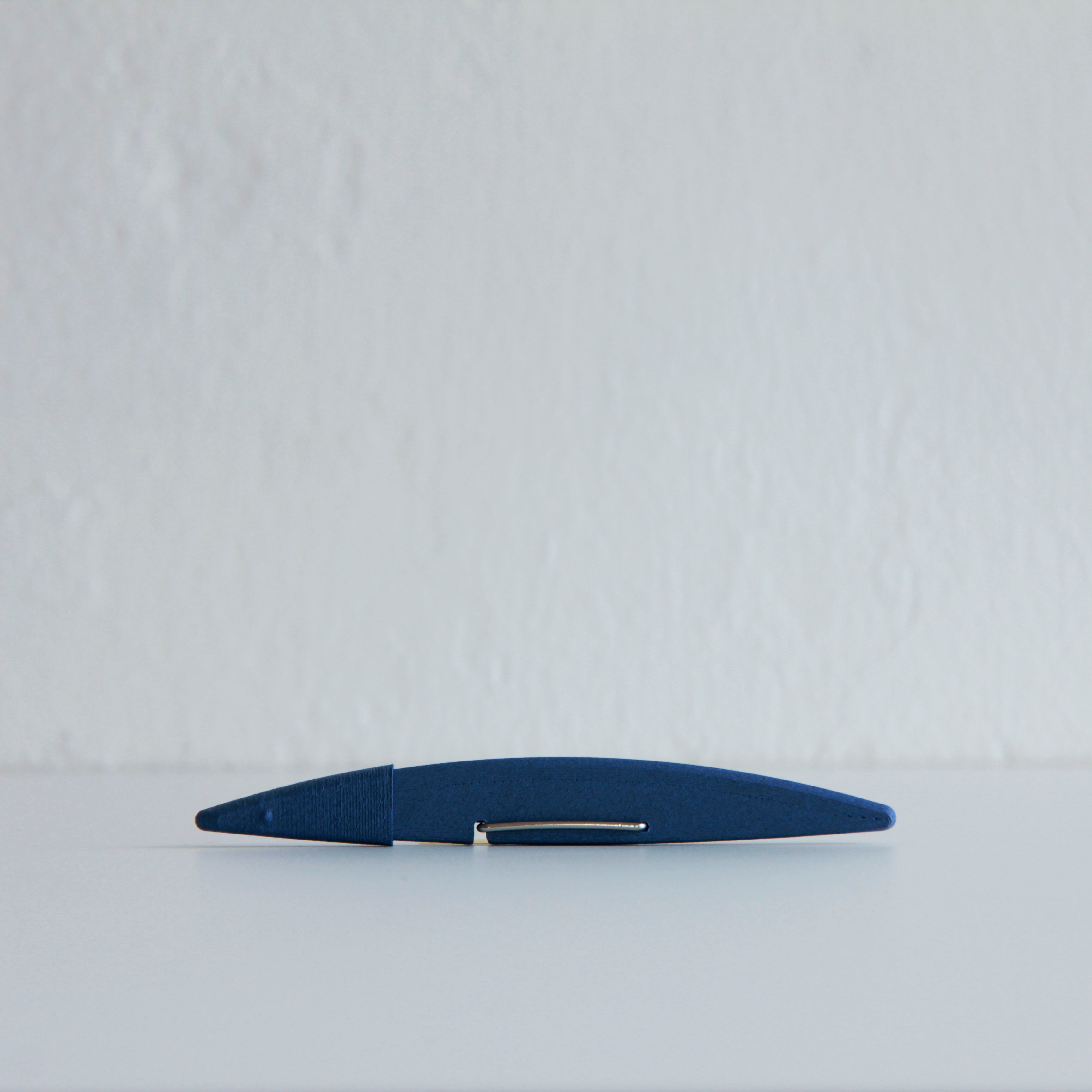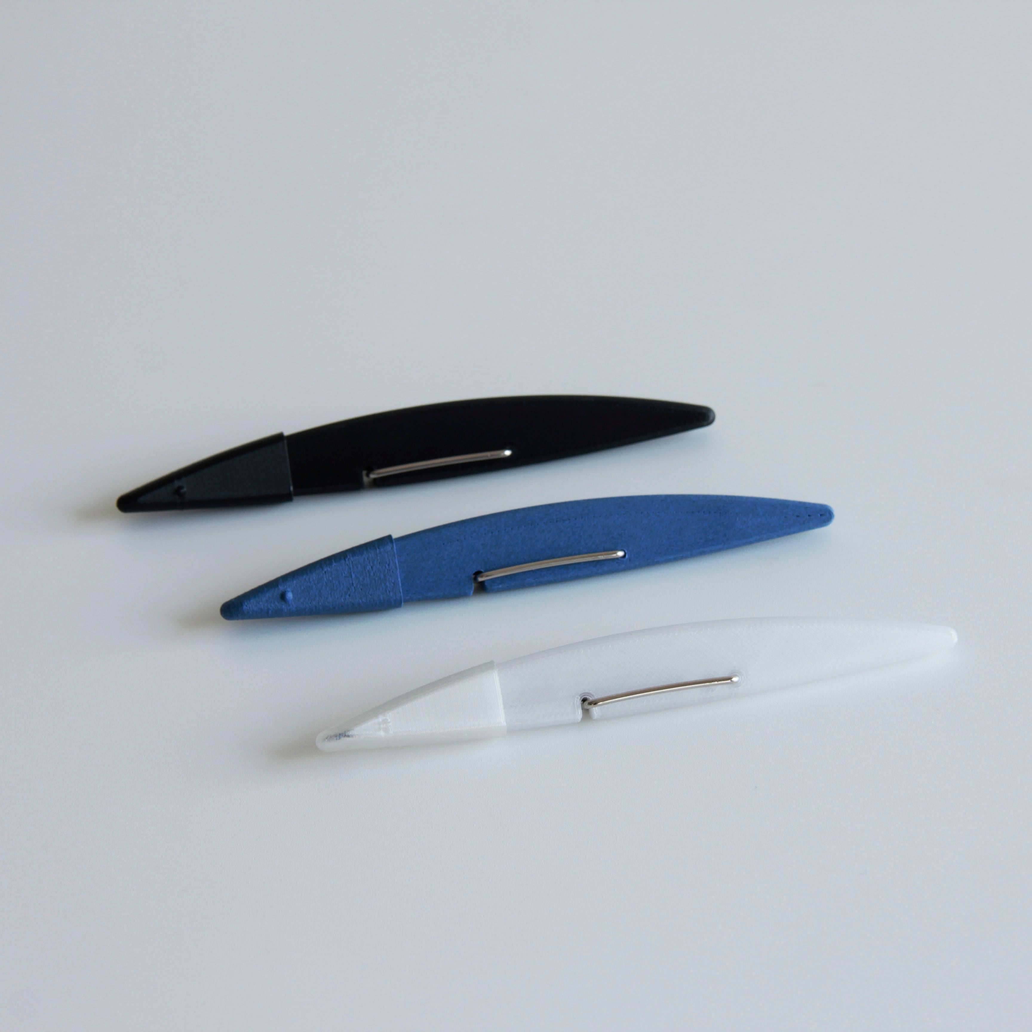 ボールペンの芯を変えるのめんどくさくない?っていう発想から生まれたプロダクトです。誰でもわかるような簡単な構造でそれができればと思い、カラビナの反発力によって芯を固定する機構になっています。持ちやすさも考慮して上面は大きな曲面にしており、指あたりも優しくなるように設計しております。キャップも使用時には逆側につけれますのでご安心ください!!意外と書きやすいんですよね。意外と!